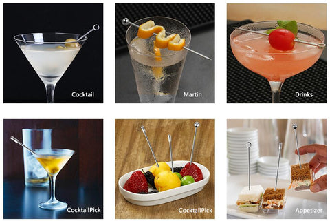- Practical:These are great for all types of garnishes such as olives, cherries,lemons, pineapple, oranges, and other fruits. They can also be used as appetizer and hors d'oeuvres such as cheese, meatballs, mini sandwiches, and fruit skewers